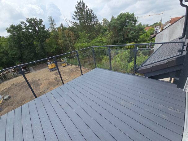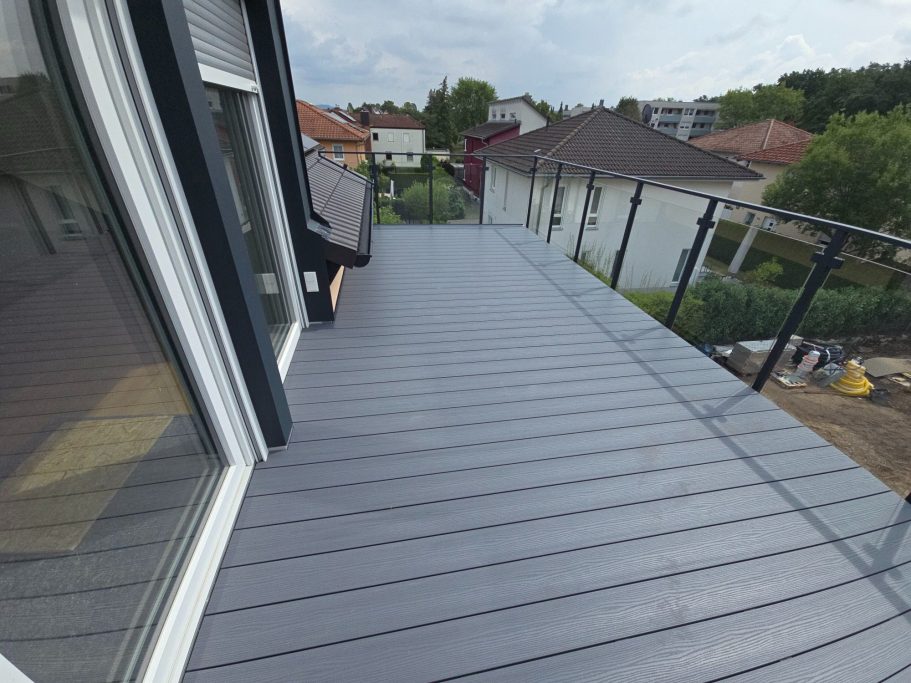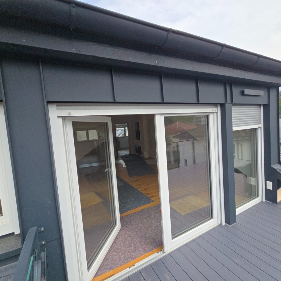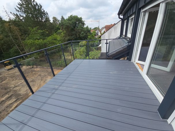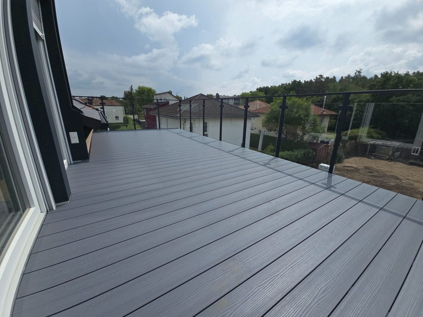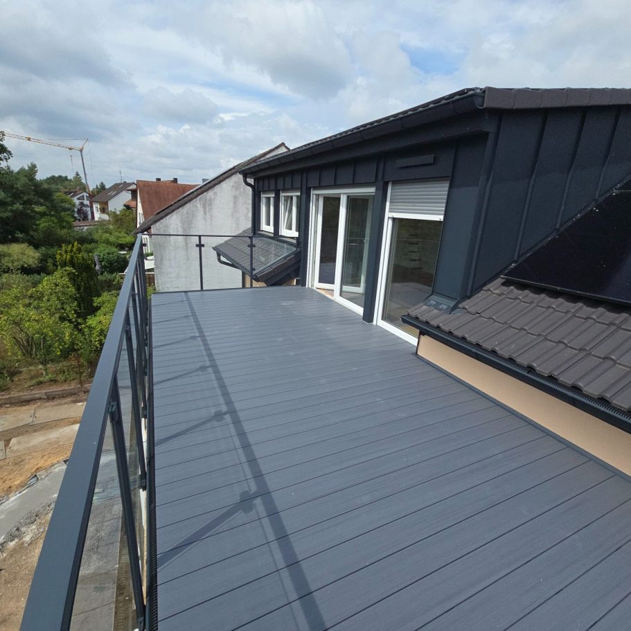 Breite Dachterasse mit Glasgeländer